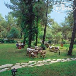 Территория отеля небольшая но очень красивая, ухоженная среди соснового леса.