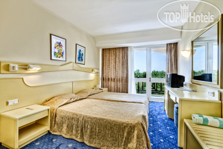 Приехали уже затемно, поужинали, и, получив ключи, пошли заселяться. Номер был на 4м этаже. В отеле есть 2 лифта. Сам номер большой (попался 3х местный), чистый и со свежим ремонтом и мебелью. Единственный минус-не закрепленный смеситель в раковине. Весь отдых нужно было его придерживать одной рукой. А так все стандартно и не плохо. Утром, выйдя на балкон, были приятно поражены местной природой и красотой. Все номера отеля выходят во внутренний двор и у всех будет шикарный вид. И чем выше этаж-тем лучше))