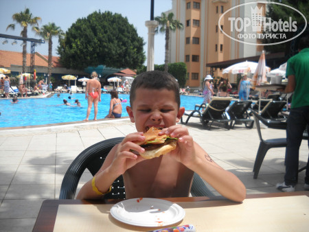 На ужин после заселения турков в отель заработала гриль и стали готовить «питу» но с соевым мясом, так что есть не рекомендую, кстати в Турции вообще не рекомендуется брать колбасы это все соевый субпродукт.
